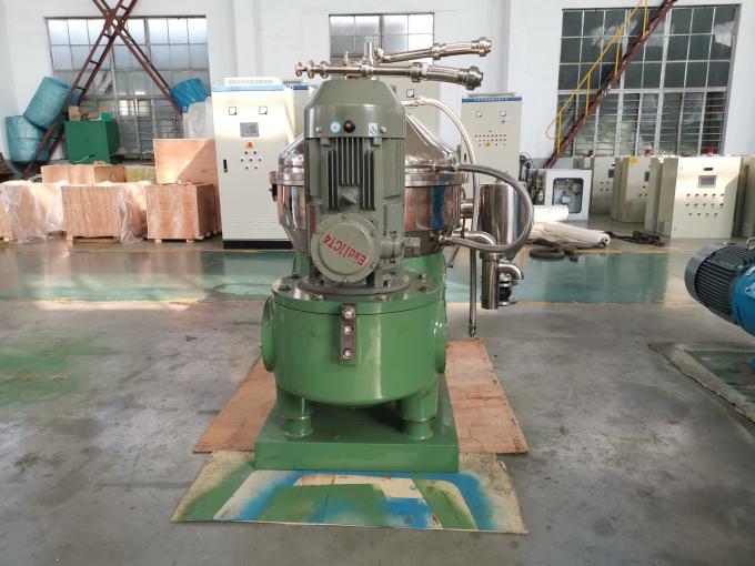 تدور الوعاء بسرعة عالية حول المحور الرئيسي ، مدفوعة بمحرك من خلال اقتران هيدروليكي وزوج تروس برغي. يتدفق سائل المخزون من أنبوب التغذية العلوي إلى قاع الوعاء وبعد ذلك سيتم فصله عبر فتحات مقعد القرص. من خلال عمل مجال قوة الطرد المركزي ، يتدفق السائل الثقيل على طول الجدار الداخلي للأقراص إلى الجدار الداخلي للوعاء ، وبعد أن يتدفق على طولهما ، سيتم تفريغه بواسطة مضخة سائلة ثقيلة ، ويتم سائل الضوء بواسطة الضوء مضخة سائلة ، تتدفق على طول الجدار الداخلي للأقراص في الأنبوب الأوسط ثم تصل إلى مخرج سائل عالي. سوف تترسب جزيئات الطور الصلب الأكبر المتبقية على جدار الوعاء ثم يتم تصريفها عبر فوهة خارج مخرج الرواسب.