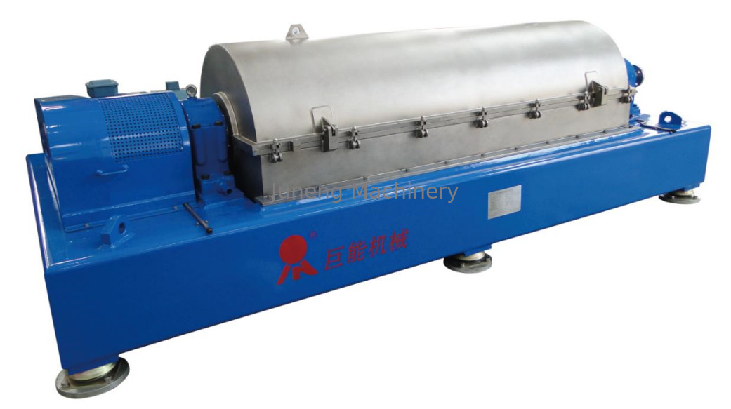 The material(crude palm oil) passing through the center feeding pipe into the centrifuge(axid feed). Under the action of centrifugal force and material pressure,it passes through the distributor distributed to the drum. The dense solid phase is deposited on the drum wall, and is transported to the drum body cone by auger delivery then falls from the discharge port to the solid collector box.At the same time, the relatively light liquid phase(processed palm oil) is not moving with the spiral because of its fluidity, but through the outlet overflow into the liquid aggregate box.