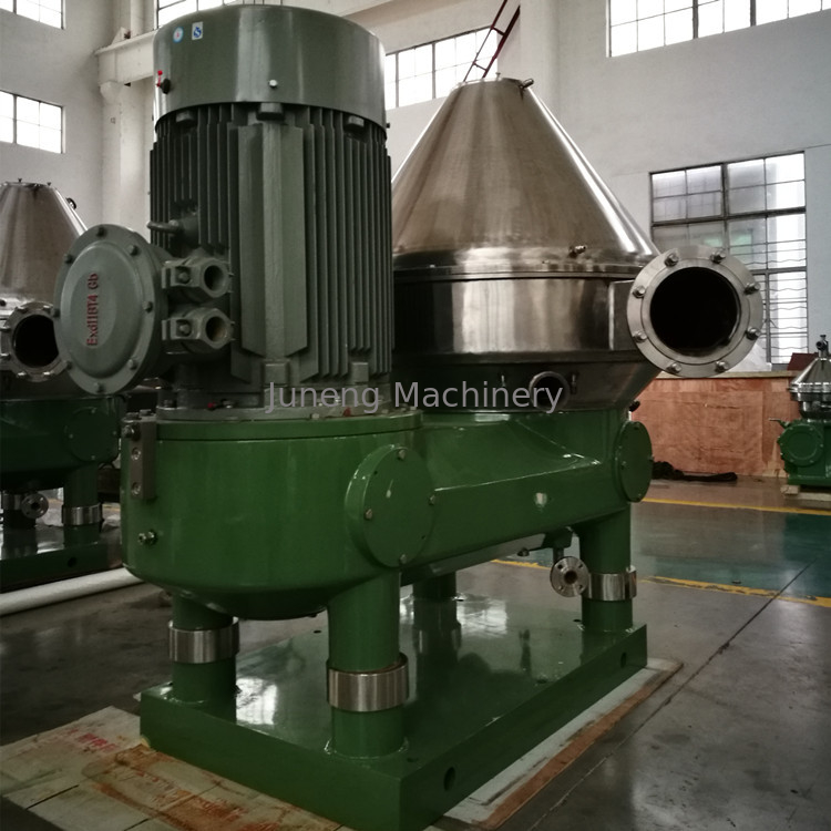 The separated material will be input into the heart of the separator, i.e. the drum. By the strong centrifugal force field, the material passes the separation partition consists of disk string, The liquid with large specific gravity moves along the disk wall to the outside of the neutral hole, where the heavy slag accumulates in the sediment area, and the heavy phase flows to the upward centripetal pump; The liquid with small specific gravity moves along the disk wall to the neutral hole and converges to the lower centripetal pump. The light and heavy phases are output by the lower centripetal pump and the upper centripetal pump respectively; Heavy slag is discharged regularly; With continuous production.